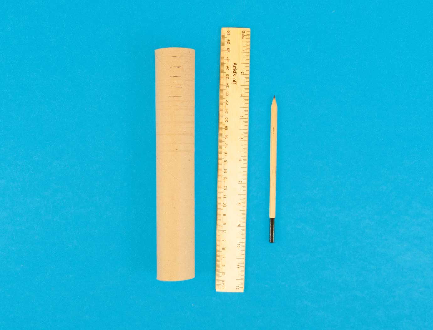 Lopuksi valmistetaan renkaat: mittaa ja leikkaa talouspaperirullan hylsy yhden senttimetrin levyisiksi renkaiksi.