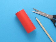 Pour faire la cheminée, découpez en biais une extrémité du dernier rouleau de papier toilette.