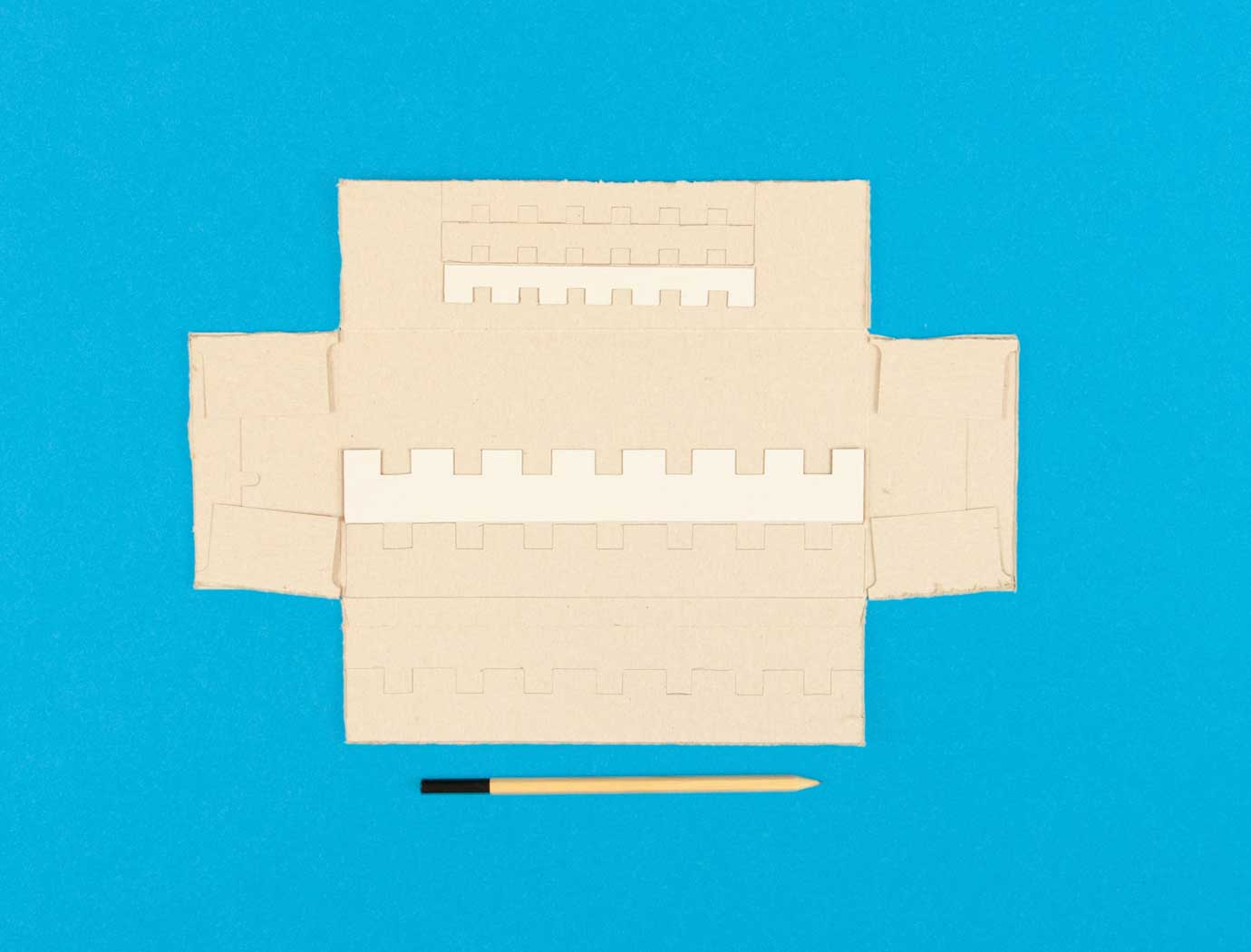 Ouvrez et aplatissez la deuxième boîte de mouchoirs vide. Utilisez les modèles pour découper des remparts.