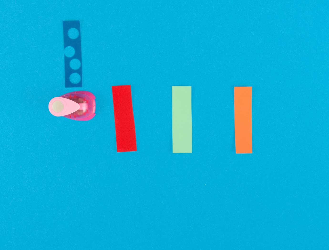 Laissez les morceaux sécher avant d'utiliser un petit poinçon circulaire pour découper les jetons de votre jeu de motricité pour la maternelle.