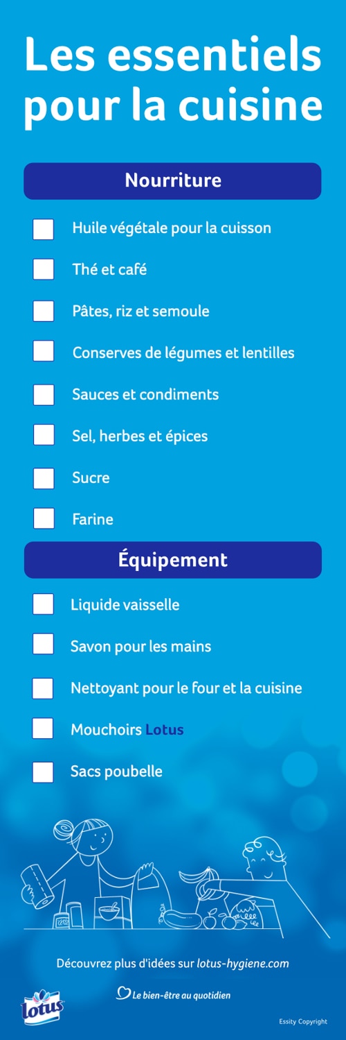 Prévoyez une boîte de mouchoirs Lotus pour vous sentir chez vous dans votre nouvelle cuisine. Gardez-en une à portée de main pour les petits accidents et vous essuyer les yeux après avoir coupé des oignons !